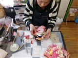 手のパーツ・持たせる小物なども糊で固定し、押絵の全体像を完成させてゆきます。